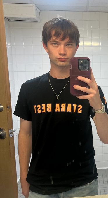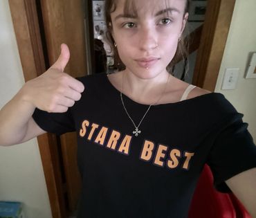 100% cotton black t-shirt with 'STARA BEST' printed on the front and stars on the sleeves.